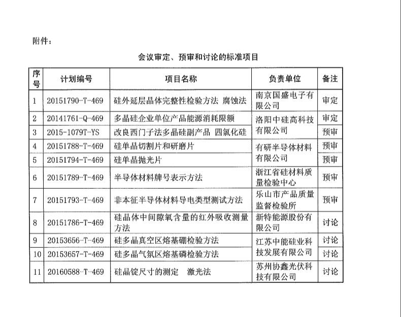 2016年9月7日半導(dǎo)體材料標(biāo)準(zhǔn)工作會(huì)議在新疆昌吉召開,會(huì)議將對(duì)《多晶硅企業(yè)單位產(chǎn)品能源消耗限額》等11項(xiàng)標(biāo)準(zhǔn)進(jìn)行討論、預(yù)審、審定和任務(wù)落實(shí)。