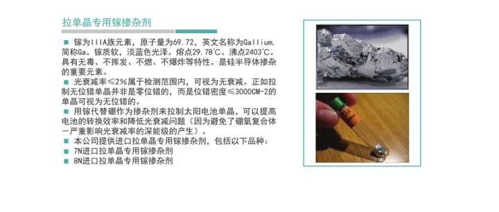 本公司提供進口拉單晶專用鎵摻雜劑,包括以下品種: